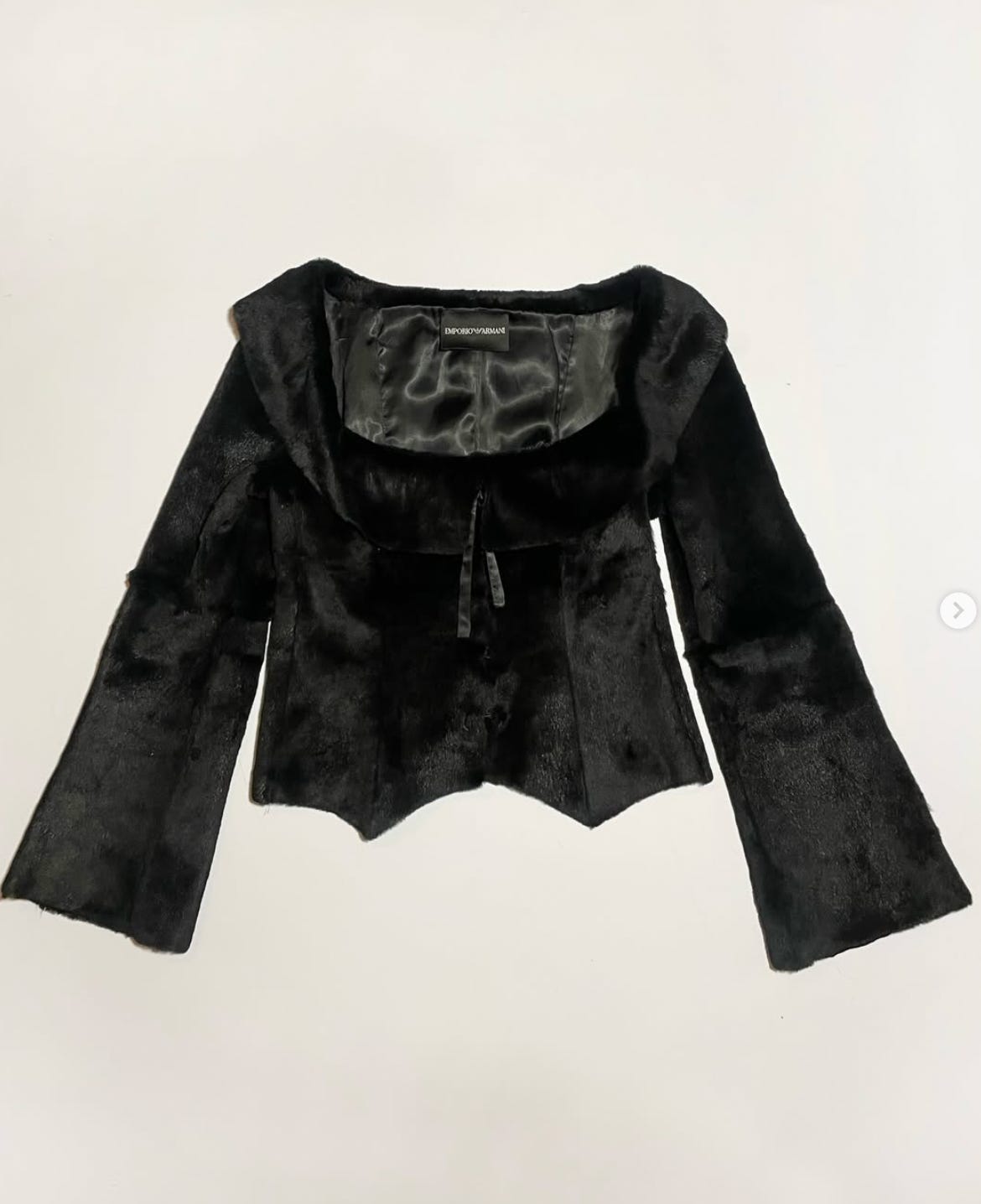 Maybe it’s because I’m halfway through obliterating all my remaining body hair - forget the year of the horse, 2026 is all about the siamese cat - but there was something about this hirsute top from Emporio Armani that caught my eye mid scroll. It’s giving Meret Oppenheimer meets Venus in furs. A merkin but for the breasts. I’m interested in the tension between a hairless body clothed in a layer of fur. It feels perverse. Like the juxtaposition between butter-soft leather and a rough dog’s tongue.