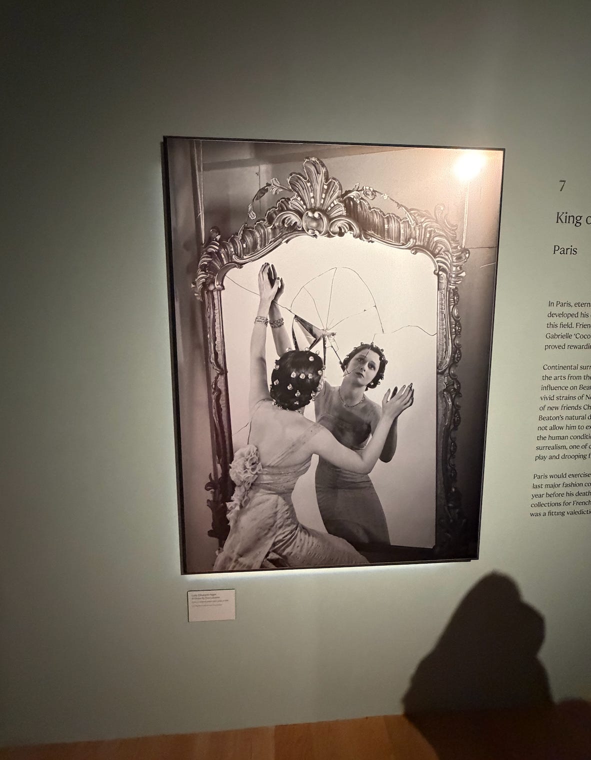 On Friday I went to see the Cecil Beaton exhibition at the National Portait Gallery, who actually took one of my favourite portraits of my mum back when she was a young warthog. One image struck a chord in particular; a portrait of a forlorn 30s debutante, gazing anxiously at her reflection in a cracked mirror, while no doubt weighing up the pros and cons of 1ML chin filler and which ¾ angle selfie to post in her weekly IG dump.